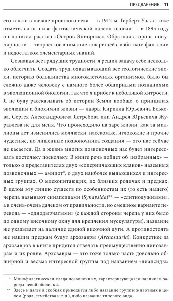 Эта книгу, на мой взгляд, не плохая или посредственная. Видно, что её автор вложил много сил в создание интересного повествования, а обложка книги и иллюстрации сами по себе замечательные. Однако, несмотря на то, что «Динозавры и млекопитающие…» позиционируется как лёгкое научно-популярное произведение, по факту для удобства прочтения нужно обладать солидной базой уже имеющихся знаний, в частности – в палеонтологии. Каждая страница содержит упоминания множества редко упоминаемых в научпопе вымерших видов с минимальным или отсутствующим описанием того, что они из себя представляли. Иллюстрации также им не посвящены, они отображают лишь основную идею текста. Рекомендую перед покупкой ознакомиться с тестовым фрагментом – он даёт достаточно точное представление о том, подойдёт ли Вам книга.
