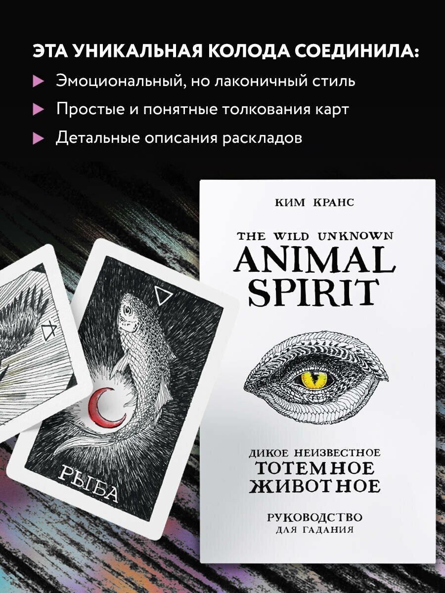 The Wild Unknown Animal Spirit — новый потрясающий инструмент для самопознания от Ким Кранс, автора знаменитого "Дикого Неизвестного Таро"! Это колода-оракул, источником вдохновения для которой стали как реальные животные, населяющие леса, поля, пустыни, реки, моря и небеса, так и мифические существа за пределами нашего мира. Кто из них — ваше тотемное животное? Какой обитатель животного царства направляет вас по жизни в данный момент, защищает и предупреждает? Вытяните карту — и узнаете.