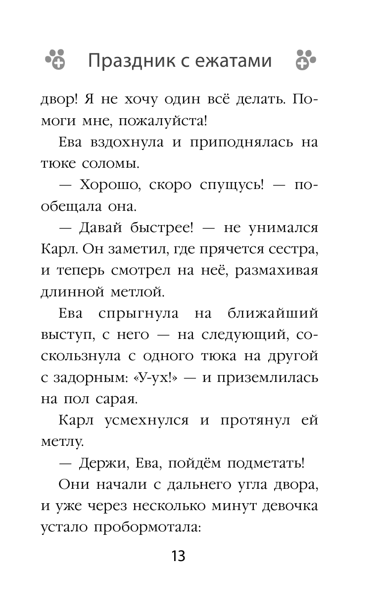 Ребенок является поклонником книжек в стиле серии Лес Дружбы. И когда те все перечитали по несколько раз, стала подыскивать что-то похожее. Так открыли для себя серию Лапа Дружбы! А поскольку мама, я, очень любит ёжиков, то первой книгой данной серии стала "Праздник с ежатами"!