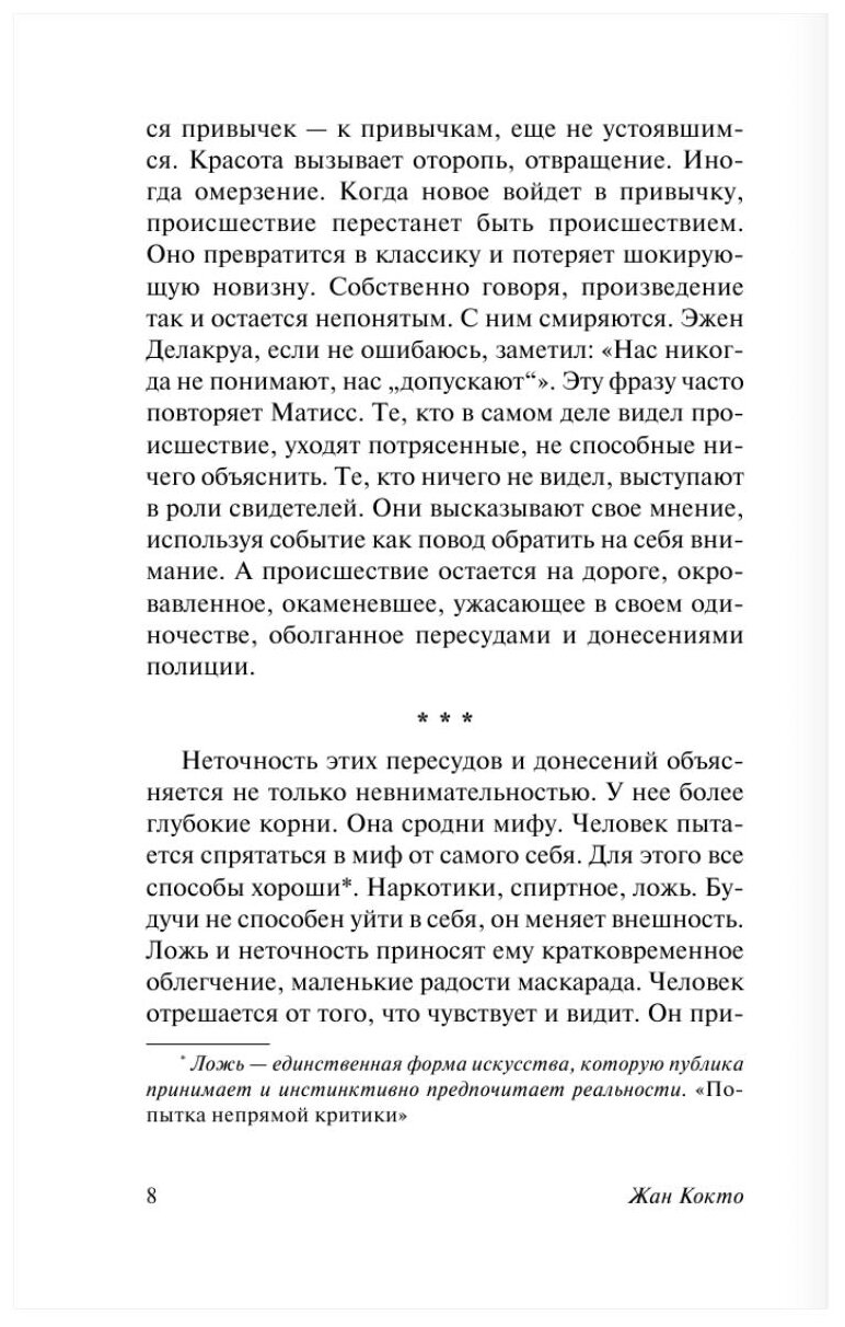 Очень понравилось то, что в «дневник» включены мысли и рассуждения Кокто. Изначально я думала, что это просто его мемуары, но как оказалось, это больше философский текст, чем текст, направленный на раскрытие сюжета (его как такового в книге и нет).
