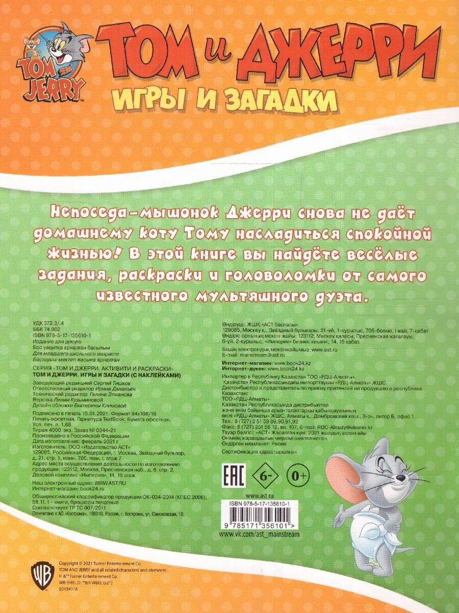 Том и Джерри. Игры и загадки (с наклейками) (.); ИЗДАТЕЛЬСТВО "АСТ", 2021