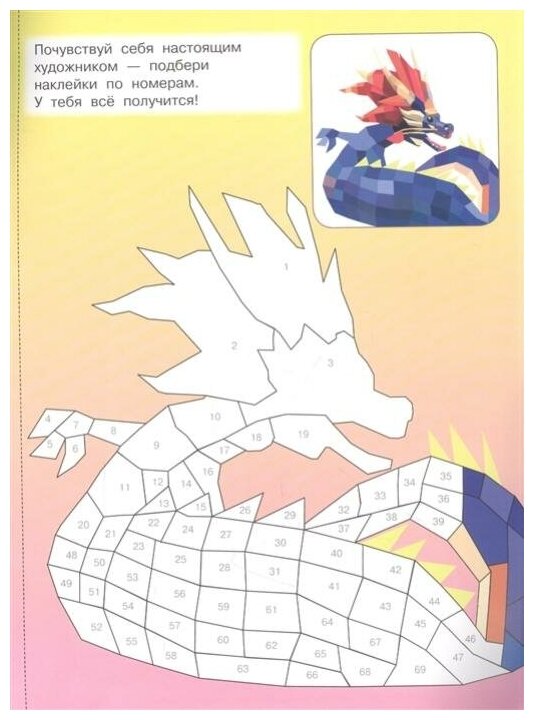 Красочные качественные картинки. Хорошо клеящиеся наклейки. Наклейки надо клеить по номерам , цифры есть на шаблоне куда их нужно приклеить и на листе где наклеены сами наклейки для их поиска. Дети правда сразу же в первый вечер половину картинок уже сделали… но их очень увлекла данная работа)
