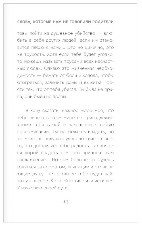 Не скажу, что книга вдохновила, воодушевила, раскрыла на что-то глаза, подняла дух, дала пищу для переосмысления, подбодрила, дала сил и уверенности. Для меня оказалась просто книгой. Легкой в прочтении, как сказка про колобка. Если ищете литературу, для поднятия самооценки из-за недолюбленности родителями, поищите другую.