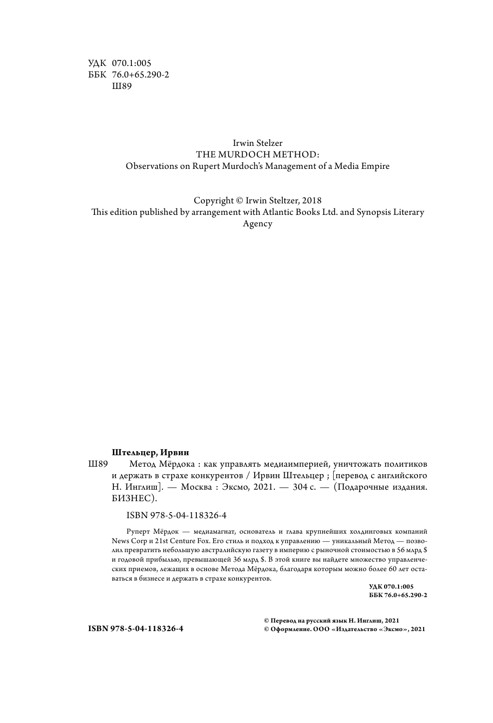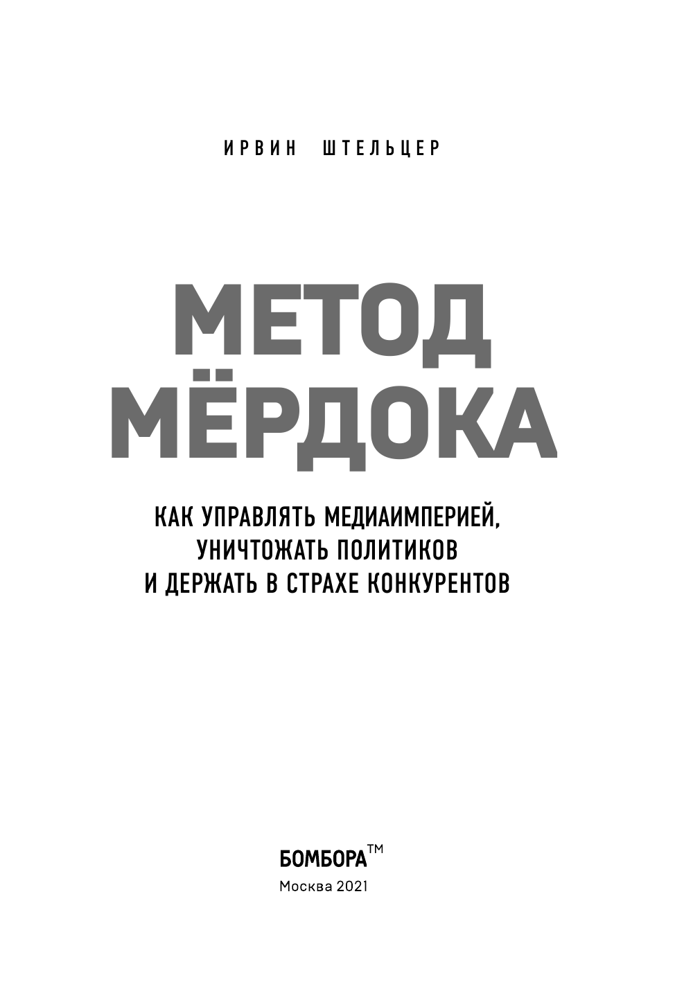 Метод Мёрдока. Как управлять медиа-империей уничтожать политиков и держать в страхе конкурентов (Ирвин Штельцер); Эксмо, БОМБОРА, 2021
