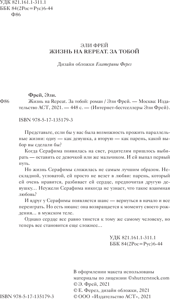 Жизнь на Repeat. За тобой (Фрей Эли); ИЗДАТЕЛЬСТВО "АСТ", 2021