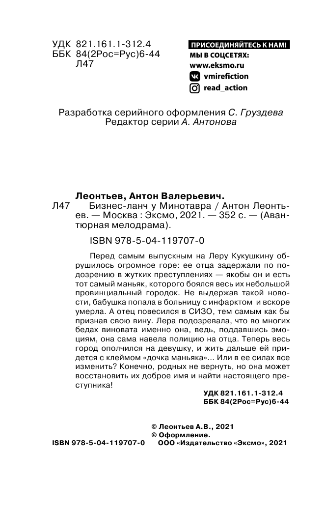 Книга: Бизнес-ланч у Минотавра (Леонтьев Антон Валерьевич); ООО "Издательство "Эксмо", 2021