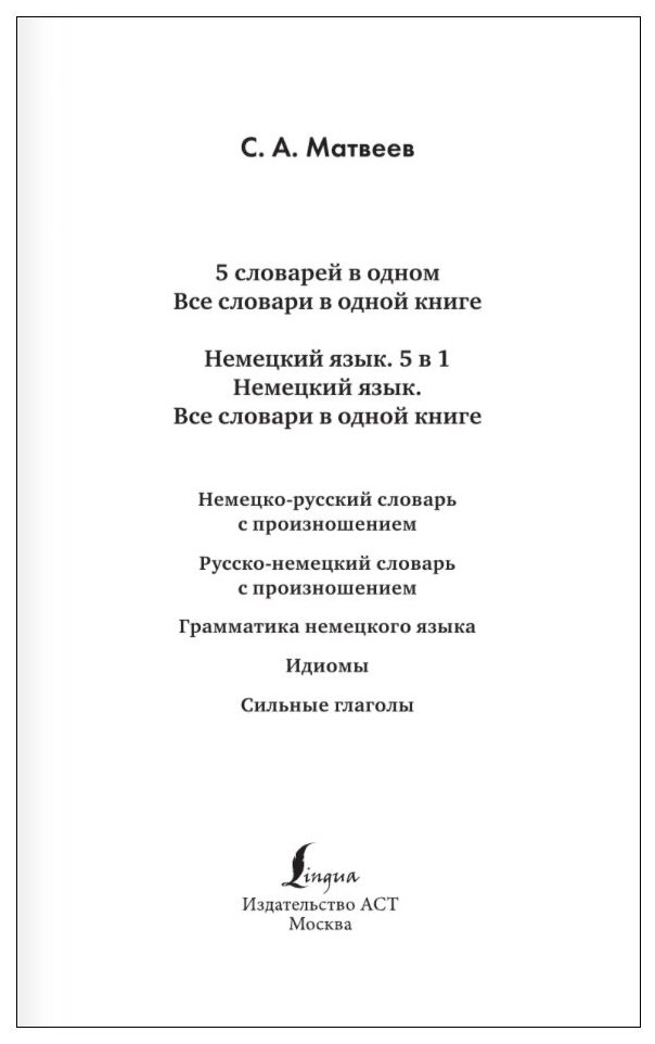 Немецкий язык. Все словари в одной книге: Немецко-русский словарь с произношением. Русско-немецкий словарь с произношением. Грамматика немецкого языка. Идиомы. Сильные глаголы (Матвеев Сергей Александрович); ИЗДАТЕЛЬСТВО "АСТ", 2021