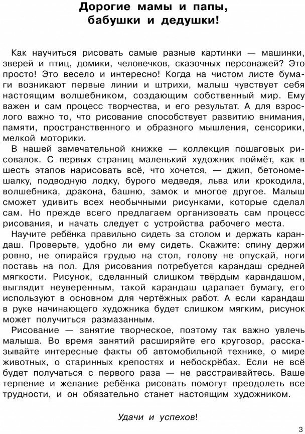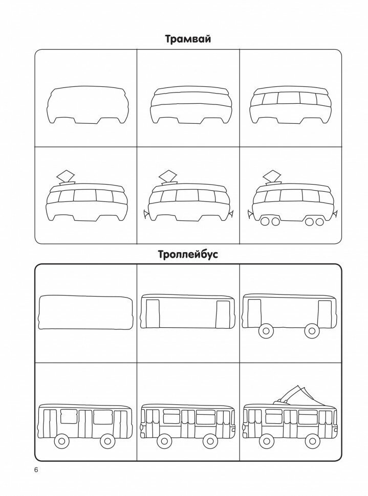 По этой книге можно легко нарисовать разнообразный вид транспорта, различных животных, замок и водонапорную башню, мельницу и маяк, сказочные персонажи а также людей и человечков в различных видах деятельности, таких как читает, стоит, спит, на коньках, на скейте и с мячом.