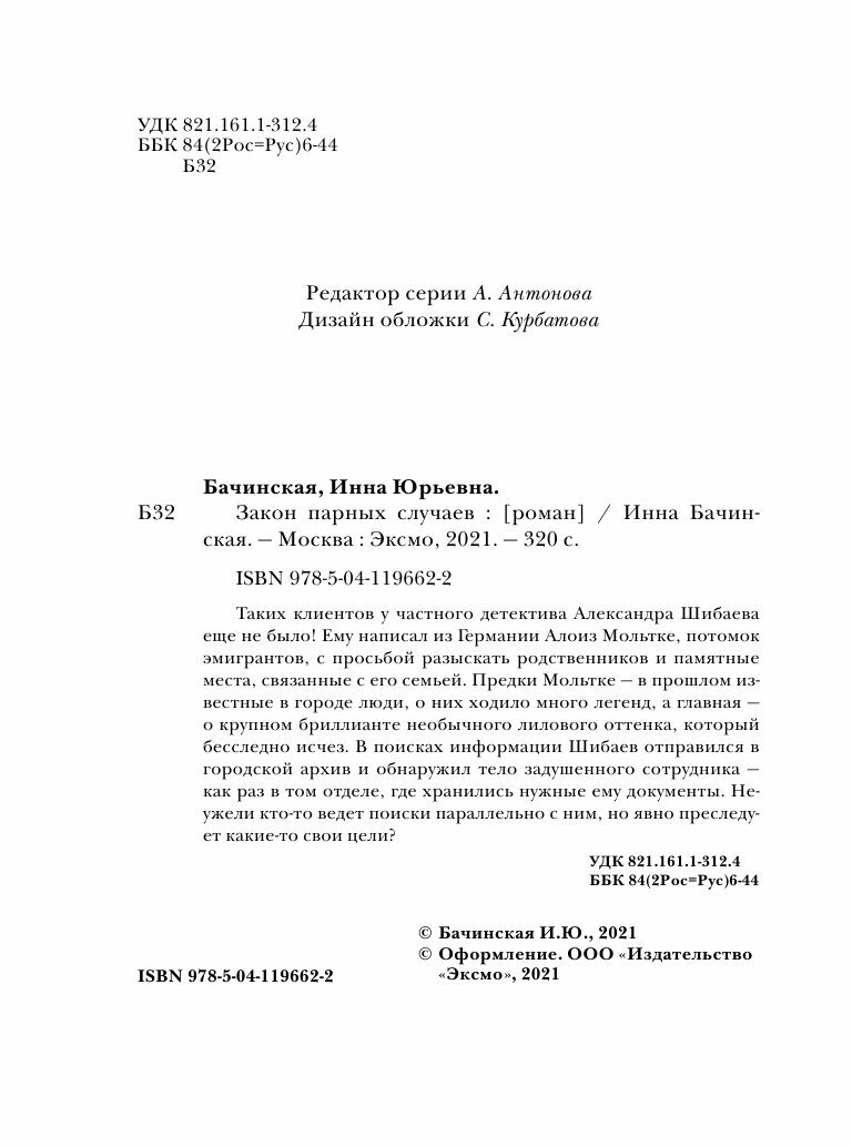 Книга: Закон парных случаев (Бачинская Инна Юрьевна); ООО "Издательство "Эксмо", 2021
