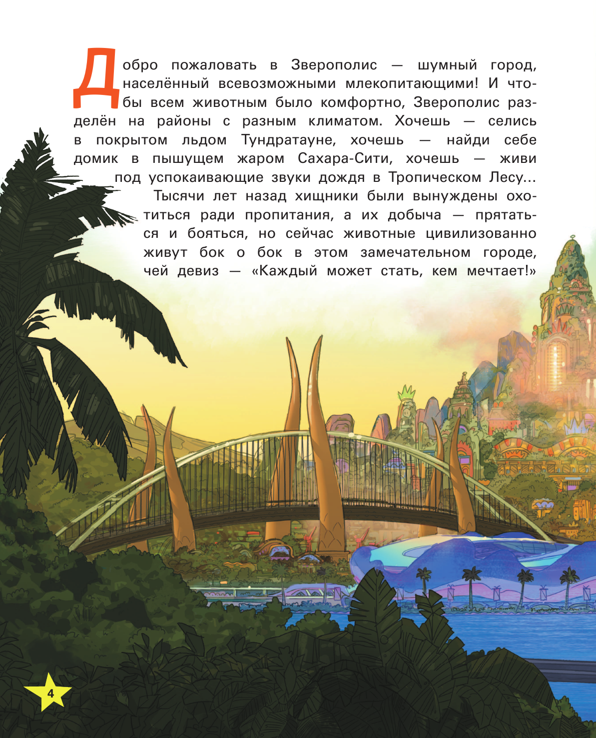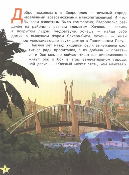 Книга пересказывает сюжет одноименного мультфильма, "Зверополис". Многие подробности и описания упущены, о чем можно догадаться по количеству страниц. Иллюстрациями служат не кадры из мультфильма, а официальные арты, так что будьте готовы, что тут все не в 3d, а двухмерное. Хотя это придает особый шарм изданию.