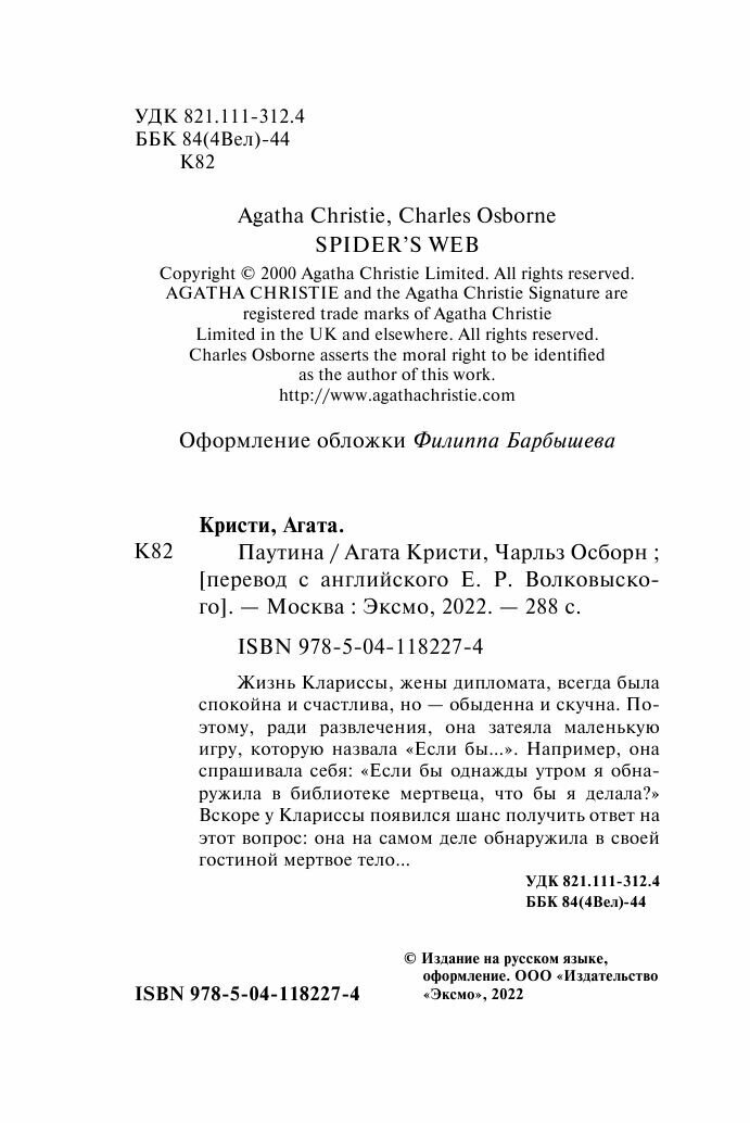 Книга: Паутина (Агата Кристи, Чарльз Осборн); Эксмо, Редакция 1, 2021