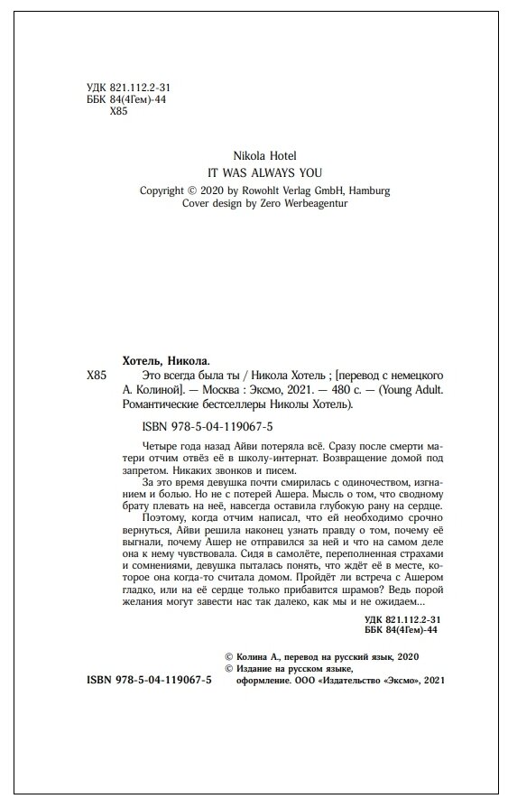 | Серия | Young Adult. Романтические бестселлеры Николы Хоте |