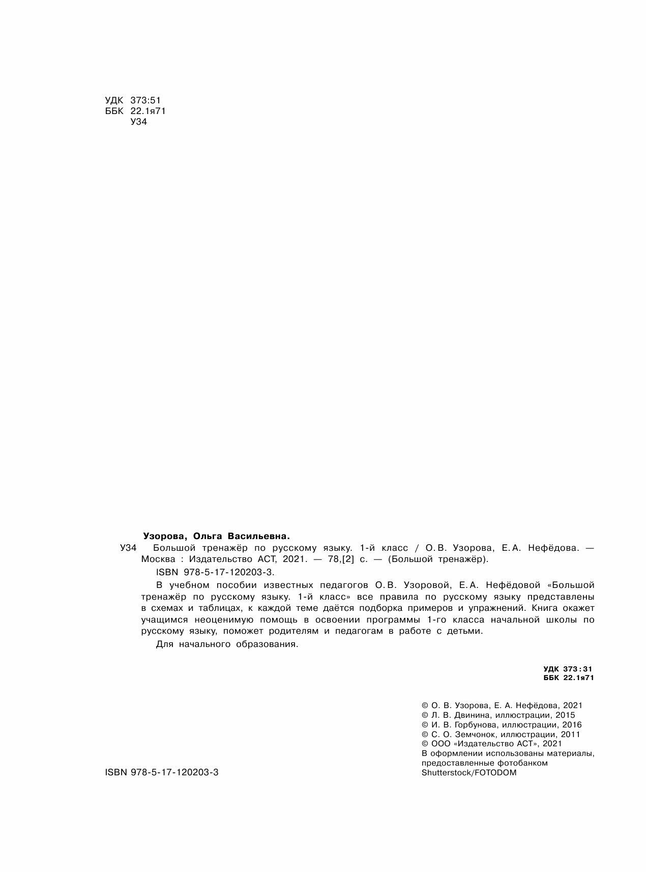 Большой тренажер по русскому языку 1 класс (Узорова Ольга Васильевна; Нефёдова Елена Алексеевна); ИЗДАТЕЛЬСТВО "АСТ", 2021