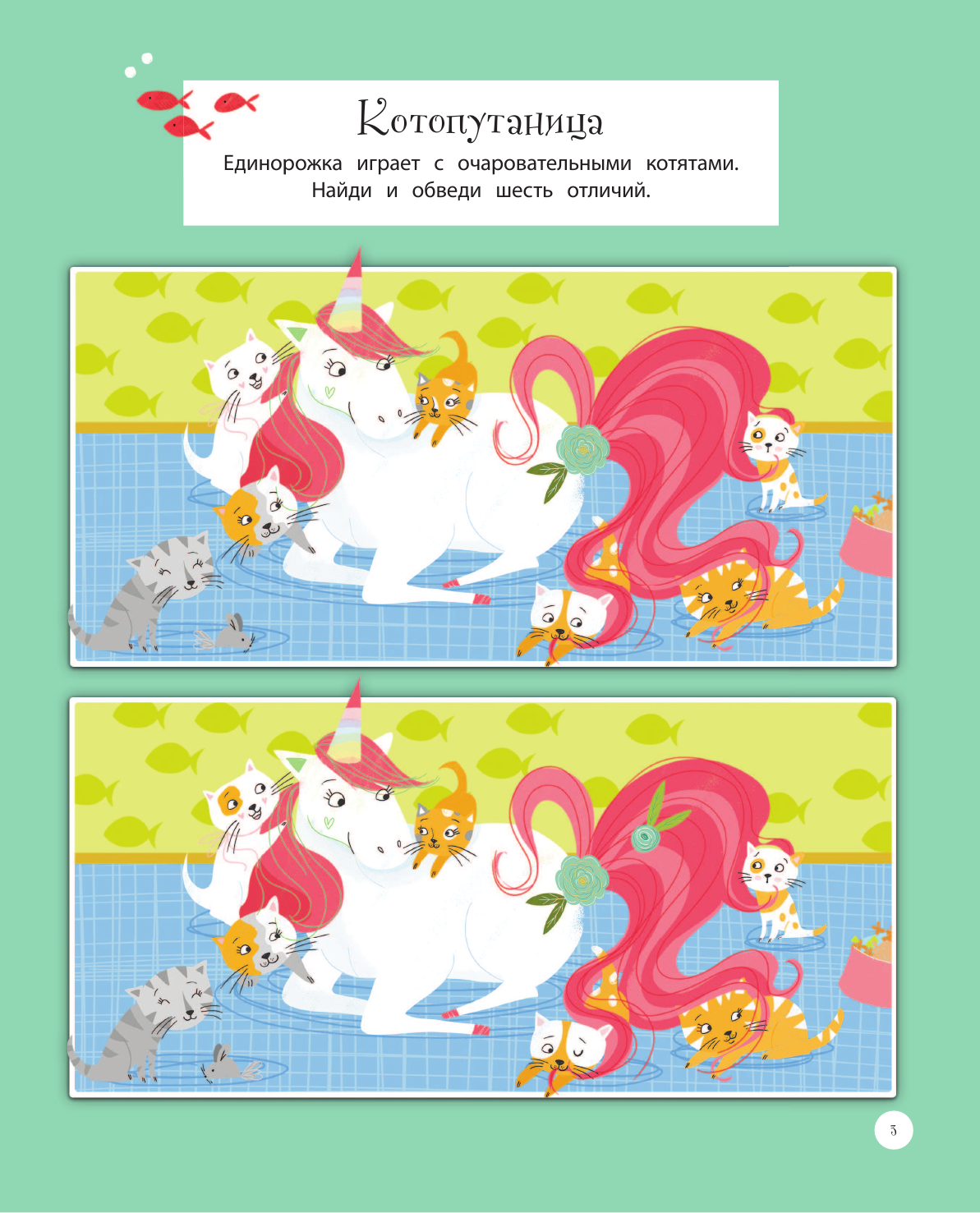 Отличная развивающая книга для любителей кошечек, единорожек и т.п. Яркие рисунки, интересные задания, много заданий найти отличия и они интересные и в меру сложные для 6 лет. Есть задания и нарисовать и раскрасить. Дочка делает простым карандашом, потом сотру и передам девочке помладше, потому что жалко такую книжку выкидывать, очень интересная. Советую к покупке
