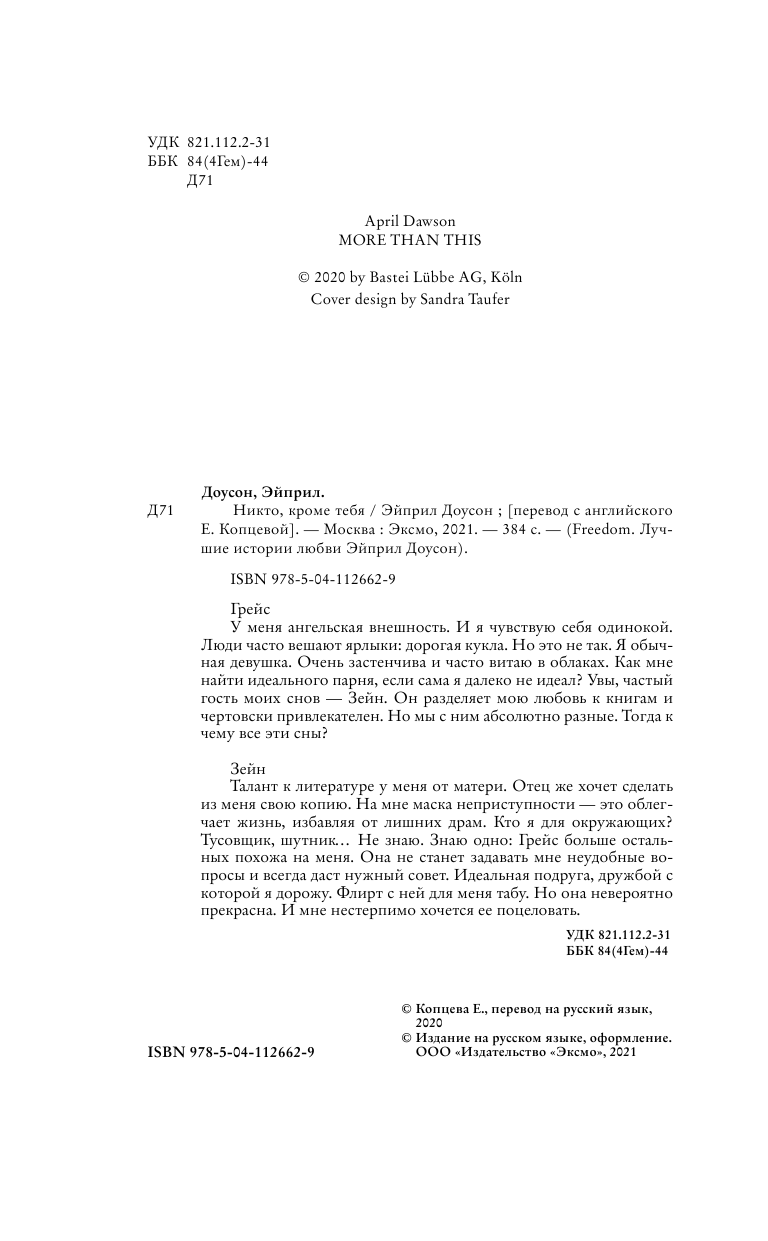 Книга: Никто кроме тебя (Доусон Эйприл); ООО "Издательство "Эксмо", 2021