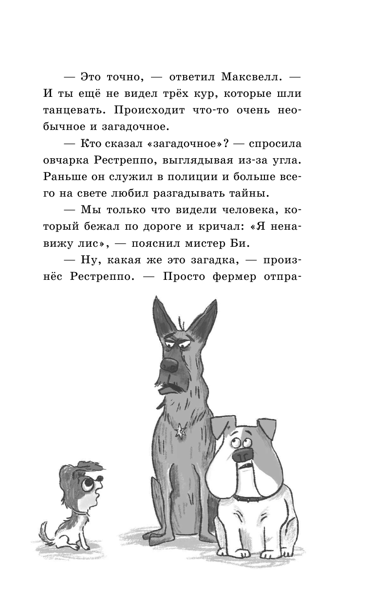 Это третья книга от щенке Максвелле. Интересная история о странном случае, произошедшем в клубе для животных. И как всегда замечательные иллюстрации. То что они чёрно-белые - не делает их хуже. Текст комфортный для чтения. Подходит для самостоятельного чтения в начальной школе. А ещё будет отличным вариантом для семейного чтения.Бумага плотная, белая. Книга в переплёте.