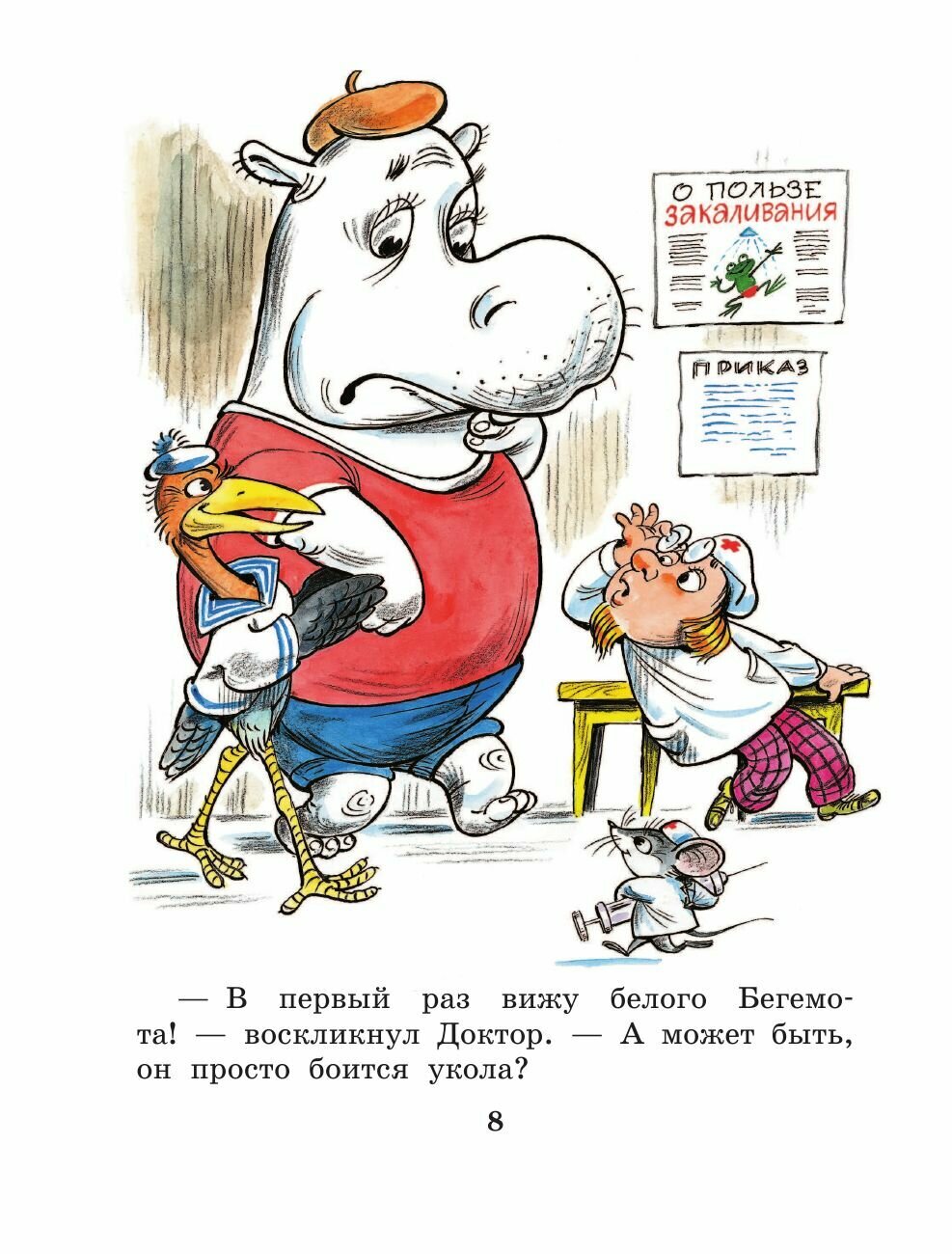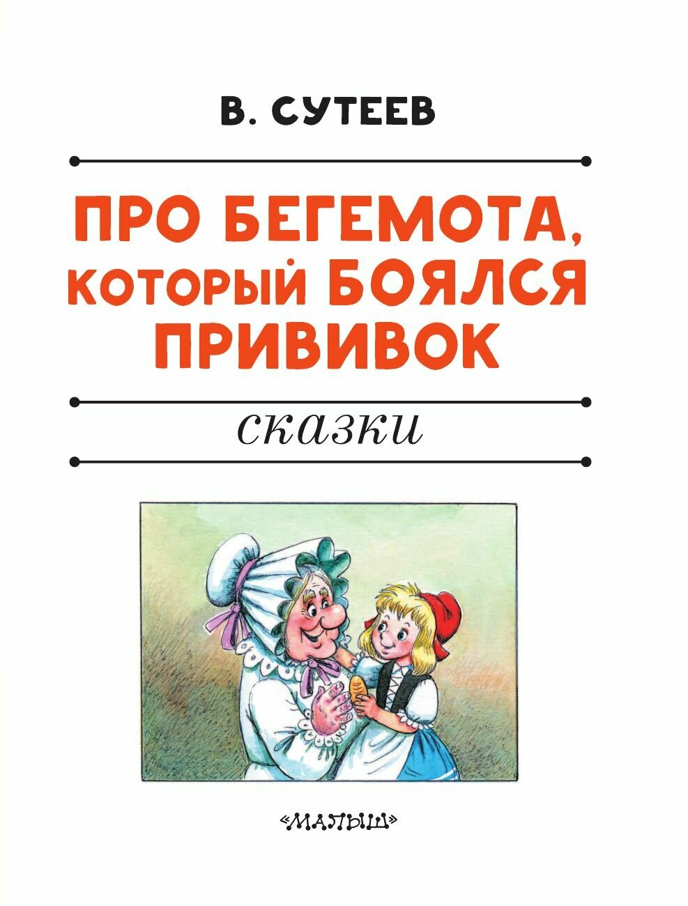 Владимир Сутеев автор многочисленных сказок и сценариев к мультикам, радует не одно десятилетие родителей и детей своим творчеством. В компактном сборнике несколько сказок помимо Бегемота, который боялся прививок, хочется отметить сказку про Петю и Красную шапочку. Красивые цветные картинки, плотные страницы крупный шрифт. Сама получаю удовольствие, когда читаю перед сном ребенку.