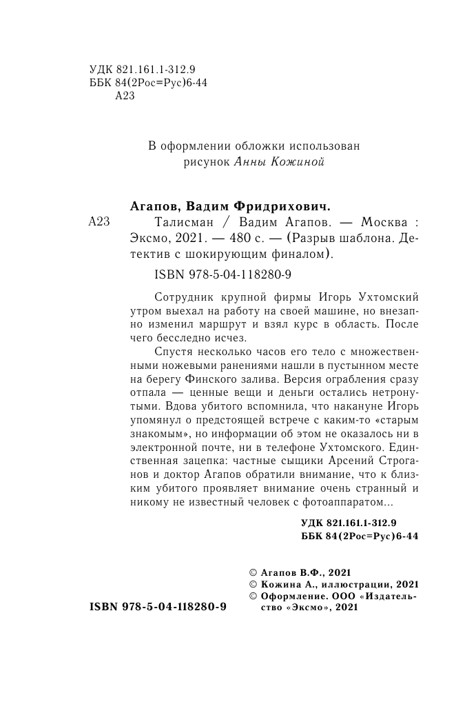 Книга: Талисман (Агапов Вадим Фридрихович); ООО "Издательство "Эксмо", 2021