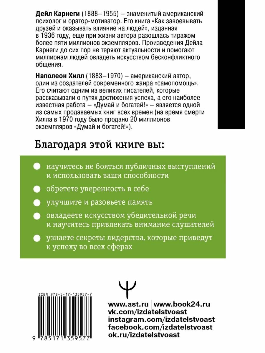 Книга Дейла Карнеги и Наполеона Хилла наполнена полезными советами и рекомендациями о том, как научиться говорить. Может показаться, что тема невероятно простая, ведь каждый из нас умеет говорить. Но это не так, ведь если ты хочешь иметь уверенную и развитию речь, то этому необходимо учиться. Советы из этой книги помогут перебороть страх публичных выступлений, а также раскроют секреты лидерства.