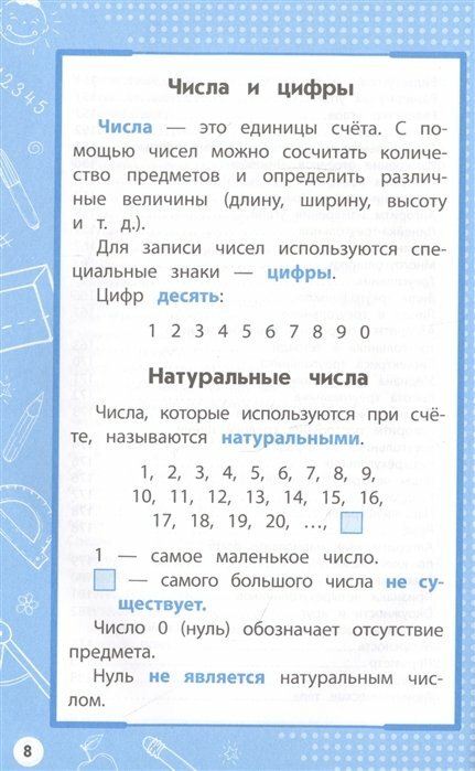 Эта книга – просто переиздание справочника «Математика. 1-4 класс в схемах. и таблицах»(2011 г.), в котором немного расширили темы, связанные с изучением основ геометрии. Первое издание прекрасно с точки зрения доступности и наглядности подачи материала. Поэтому, если у вас его нет, – добавляйте в корзину без сомнений.