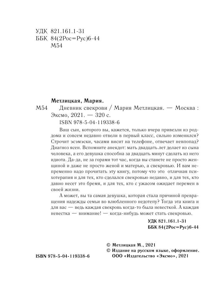 Книга: Дневник свекрови (Метлицкая Мария Робертовна); Эксмо, Редакция 1, 2021