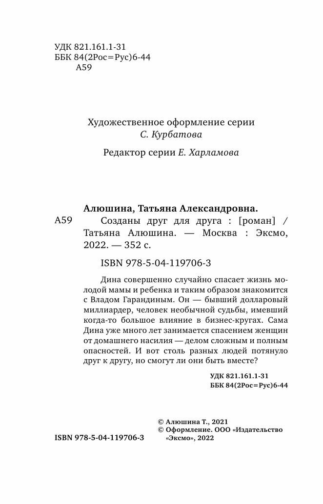 Книга: Созданы друг для друга (Алюшина Татьяна Александровна); ООО "Издательство "Эксмо", 2021