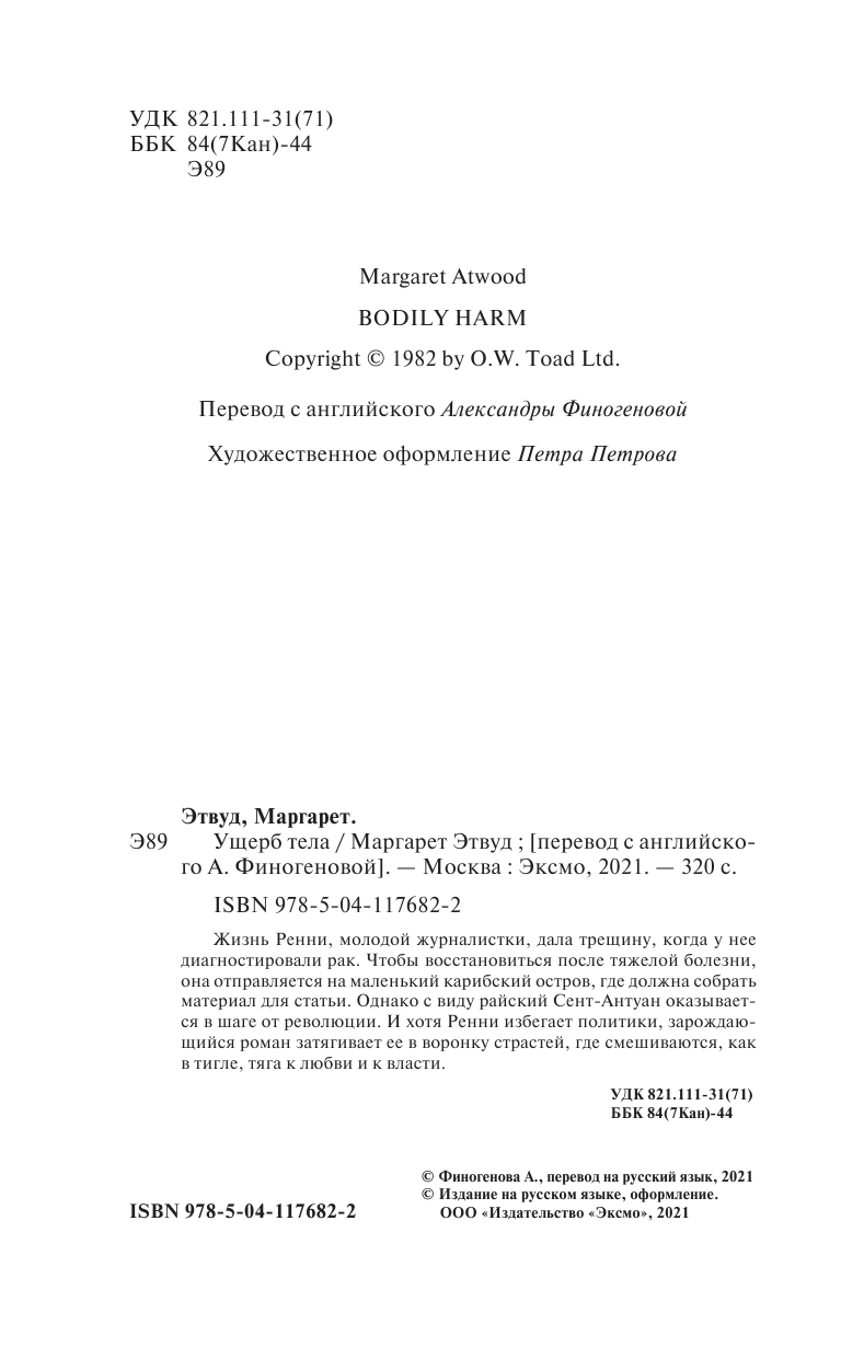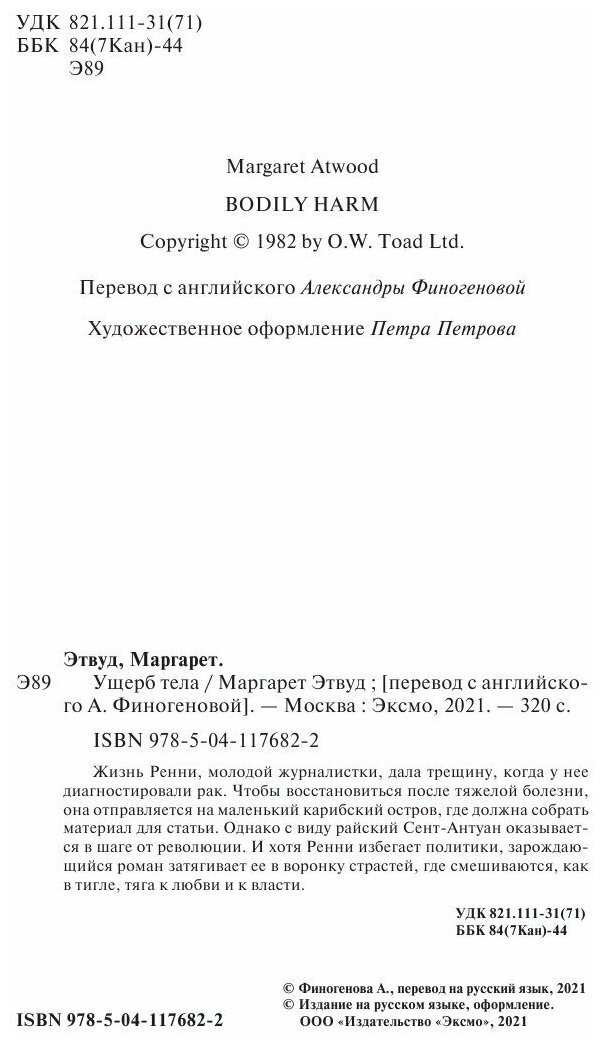 Книга: Ущерб тела (Этвуд Маргарет); ООО "Издательство "Эксмо", 2021