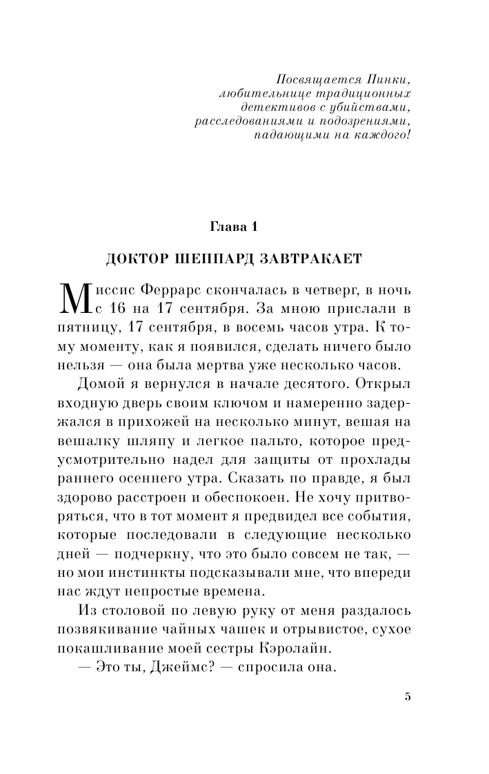 Это моё первое знакомство с Агатой Кристи Не угадала, кто же на самом деле убийца. "не на того подумала" и оказывается совсем рядышком под носом. Не получится из меня "русский Пуаро". Отношусь к типу людей,которые не читает рецензии и избегает просмотр экранизации (если они есть) ,пока сама не прочту. Поэтому "Убийство Роджера Экройда" читала с неподдельным интересом. Автор смог всех персонажей детектива собрать в "единый клубочек тайн и интриг" и тем самым держит читателя до конца. У меня не получится написать рецензию без спойлеров (люблю все рассказывать ха-ха ) . Развязка неожиданная,опять может только лично для меня. P.S я восхищена мастерством леди Агаты. Хорошее начало для знакомства с автором и произведениями. -