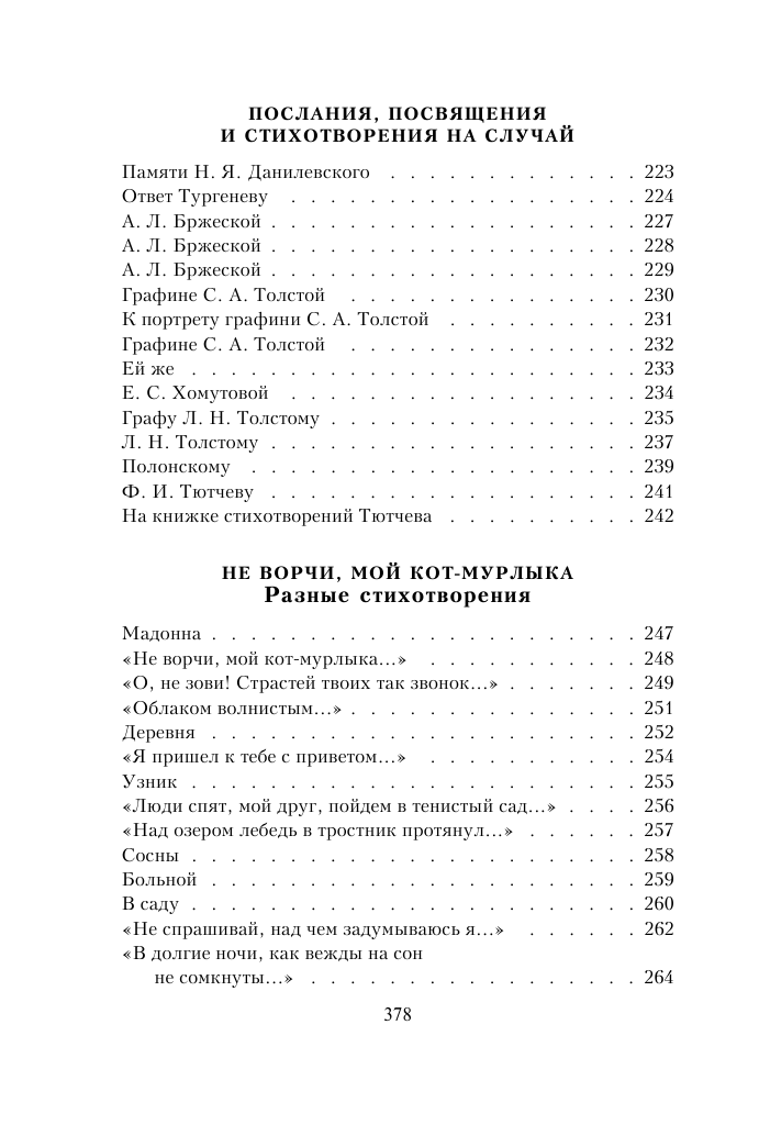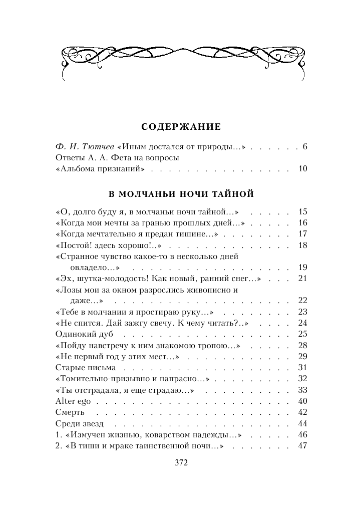 В книге есть портреты автора разных лет жизни и краткая летопись жизни. В начале приведены ответы Фета на вопросы "Альбома признаний" дочери Л.Н. Толстого Татьяны Львовны.