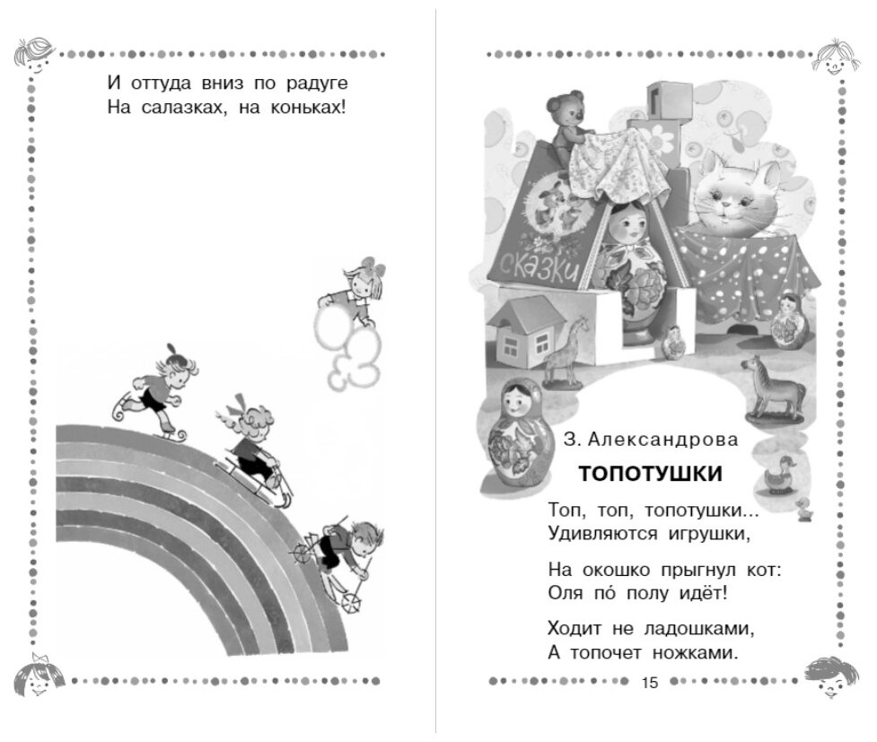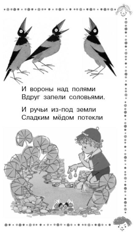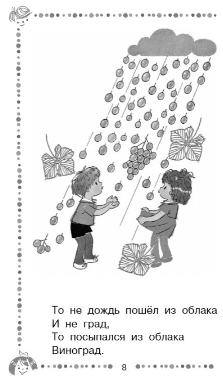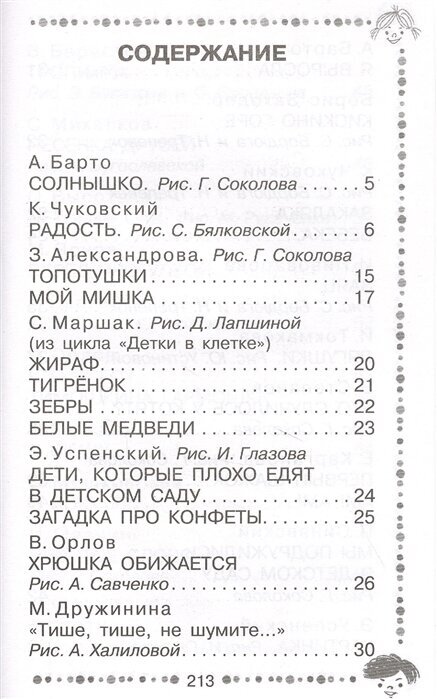Сборник понравился разнообразием стихотворений, есть уже ставшие классикой - произведения А.Барто, С.Маршака, С.Михалкова; так и современных авторов, например, любимой нами А.Орловой. Шрифт крупный, книга подойдет для первого самостоятельного чтения ребенком. Иллюстрации есть, но они черно-белые, что понятно, поскольку цена соответствующая. Рекомендую к покупке всем, у кого есть детки.