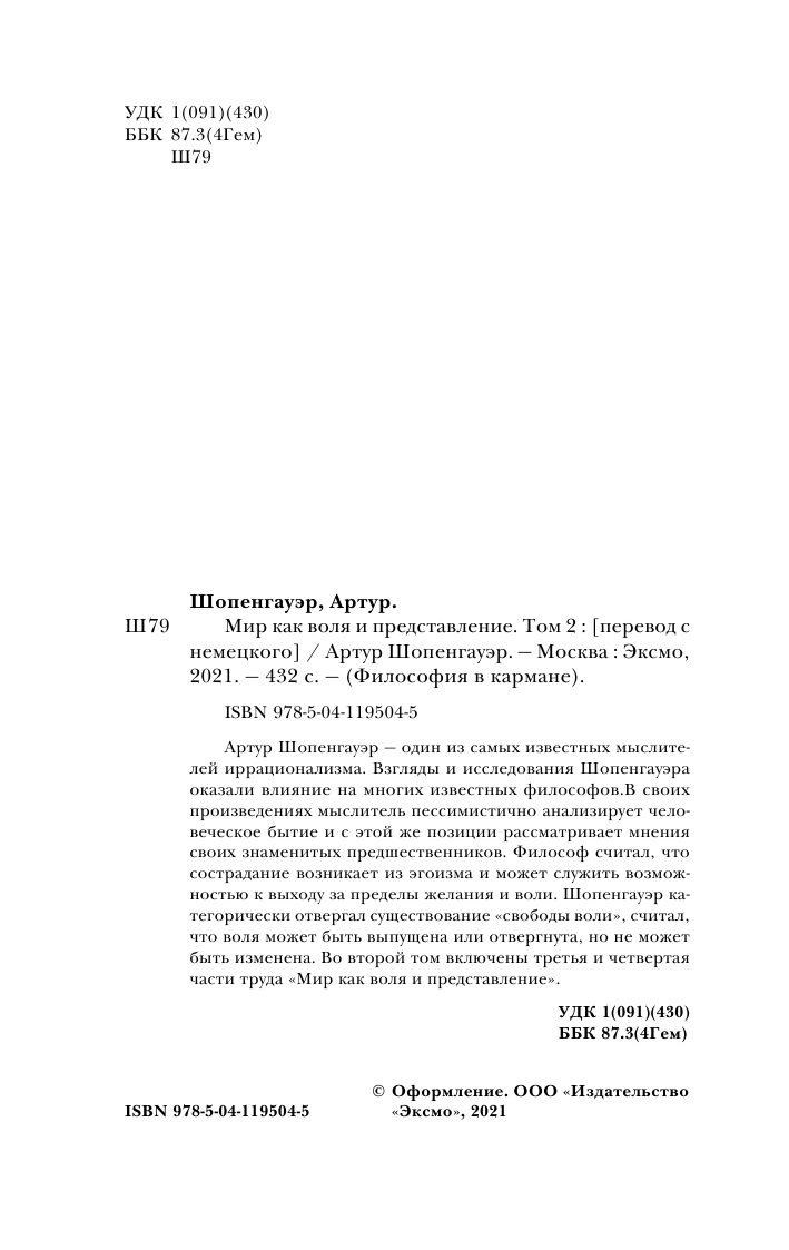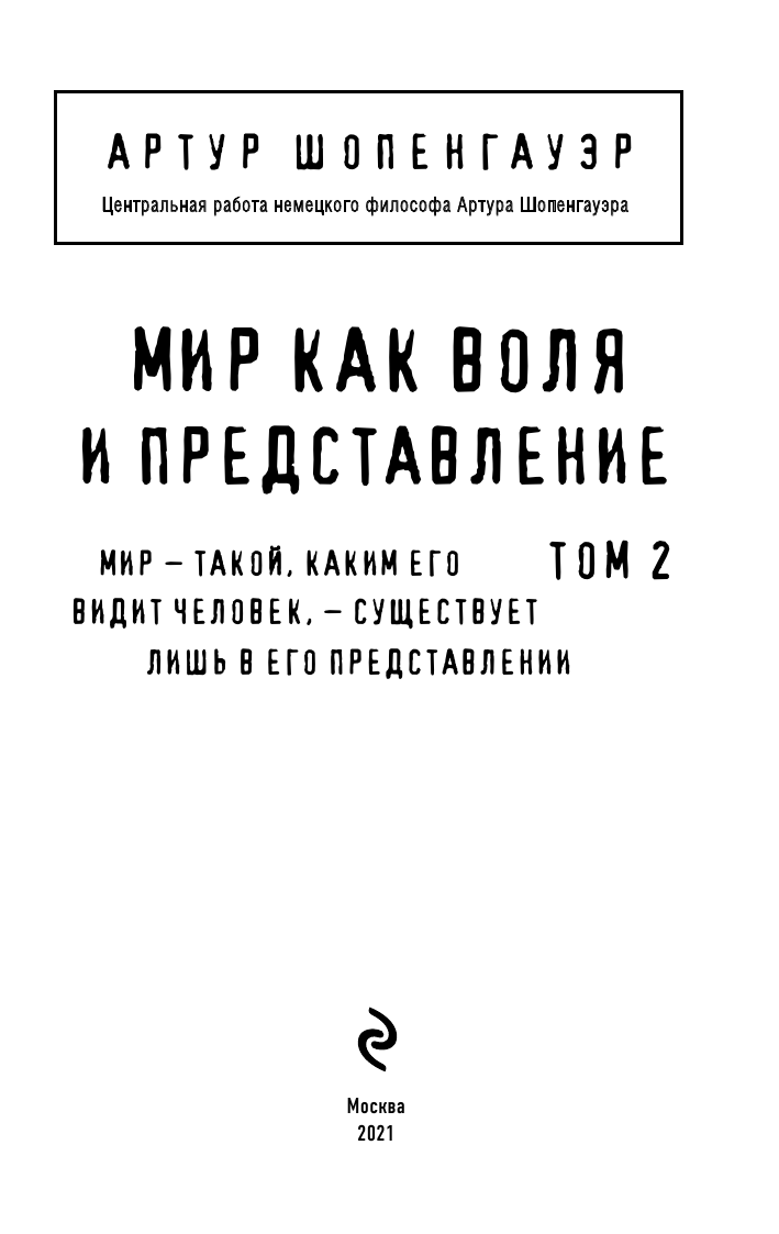 Мир как воля и представление. Том 2 (Артур Шопенгауэр); Эксмо, 2021