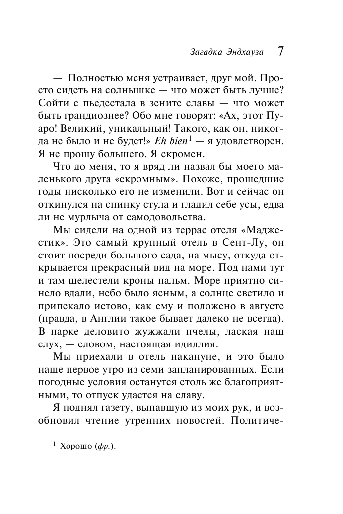 Загадку Эндхауза я читала почти как опытная читательница романов Агаты Кристи. Стала лучше помечать важные детали, вместе с Пуаро строить предположения и мотивы, выделять предполагаемого убийцу... Читать становится намного интереснее - хочется знать, окажется ли твоя догадка правдивой.