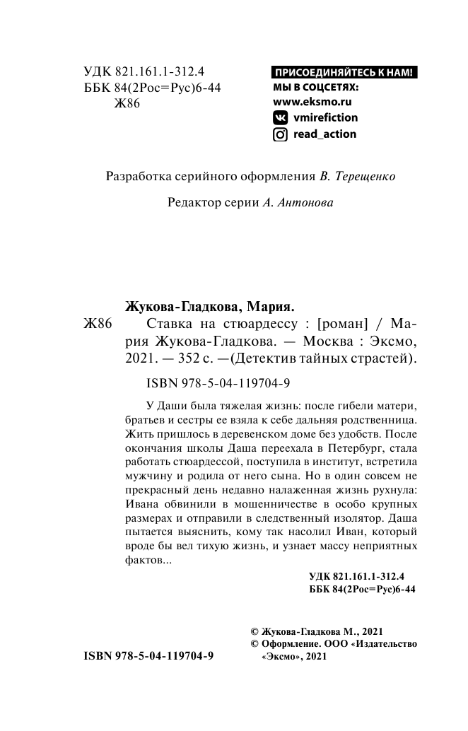 Книга: Ставка на стюардессу (Мария Жукова-Гладкова); Эксмо, Редакция 1, 2021