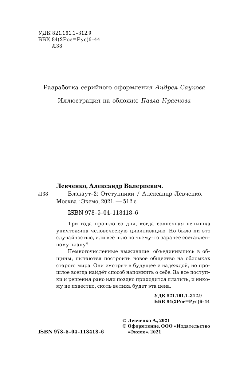 Книга: Блэкаут-2. Отступники (Александр Левченко); Эксмо, Редакция 1, 2021