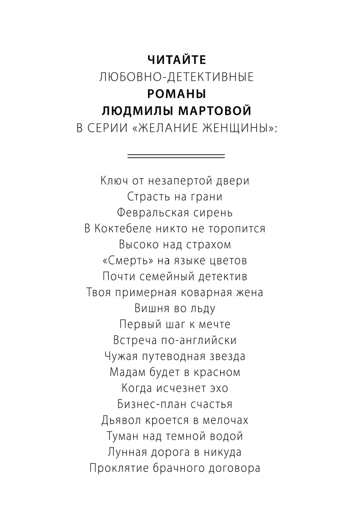 | Серия | Детективные романы Людмилы Мартовой (обложка) |