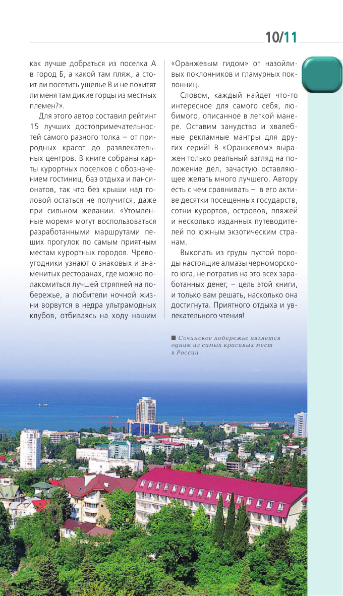 Ранее покупала "Оранжевый гид" по Калининграду и Калининградской области. Осталась очень довольна. Что касается "Сочи и Черноморского побережья", то и тут не разочаровалась. Информативный, удобный путеводитель. Помимо информации по маршрутам и достопримечательностям есть полезные советы для путешественников, краткая историческая справка, удобные карты.