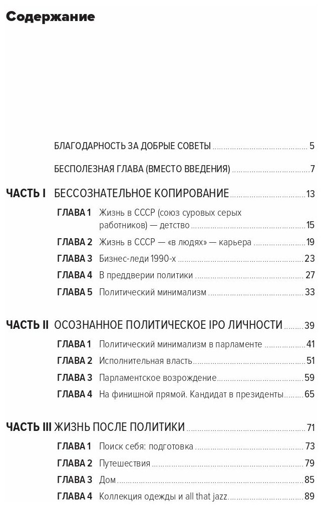 В целом, достаточно позитивно отношусь к автору, пока она не начинает говорить о своих гипер левых либеральных идеях для инфантильной молодежи. Но! Не могла отделаться от мысли, что говорит Хакамада намного лучше, чем пишет... Парадокс не иначе. Ее лекции, даже кастрированные смотреть намного интереснее, чем читать книгу. Вроде в ней все по делу, структурировано, лаконично..... Но осадок и странное послевкусие остается. С чем это связано до конца не могу понять. То ли слог сильно поправили редакторы, то ли настроение у Ирины при написании было не очень...