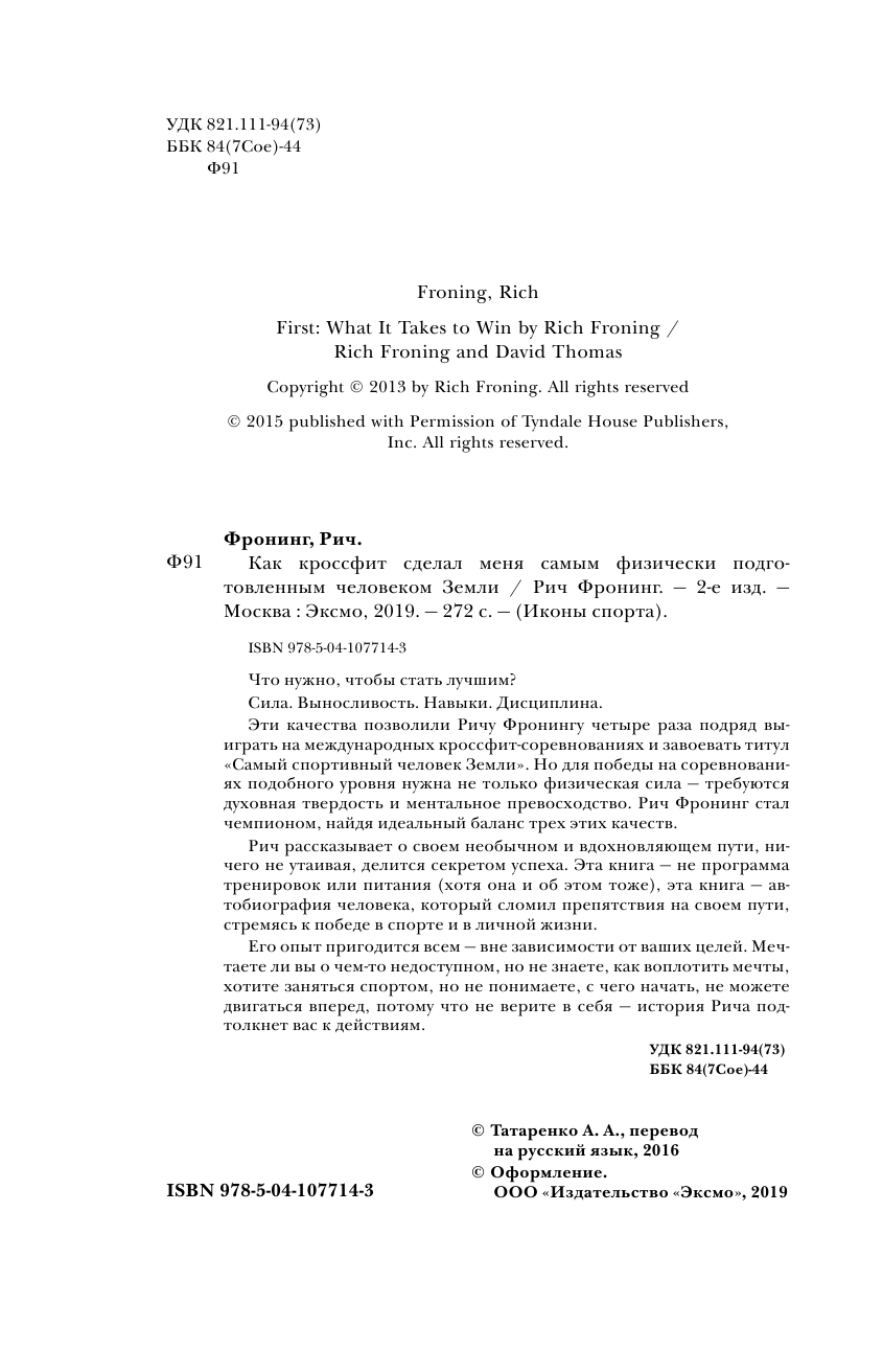 Сервис сравнения цен СкидкаГИД предлагает сравнить цены на товар «Книга: Рич Фронинг. Как кроссфит сделал меня самым физически подготовленным человеком Земли (2-е изд.) (Рич Фронинг); Эксмо, 2019»