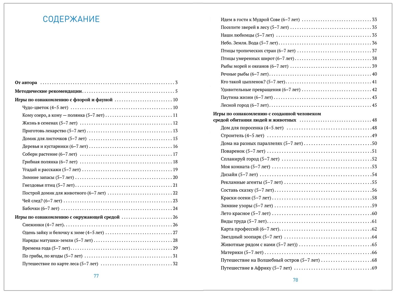Это целый УМК, целый сборник разнообразных игр для свободной деятельности с детьми. Есть игры для знакомства с флорой и фауной, с окружающей нас средой, со средой обитания людей и животных. Игры подобраны по возрасту 4-7 лет. Замечательная книга, каждая игра имеет описание и инструкцию по организации. Много новых игр узнаете для себя и будете использовать к покупке. Рекомендую к покупке.