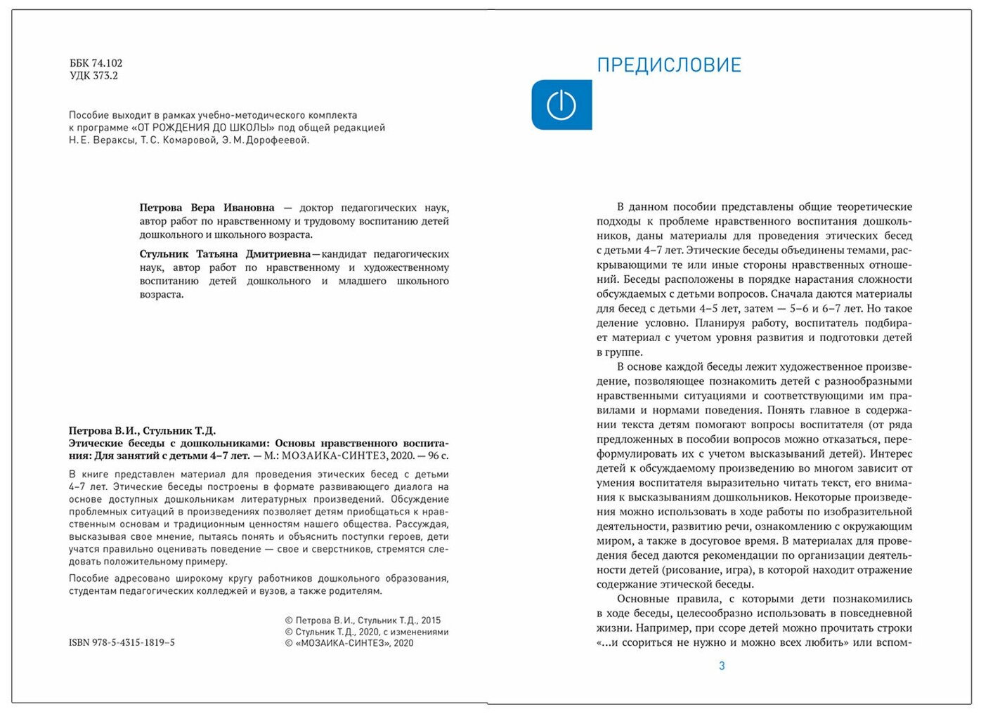 Этические беседы с дошкольниками. (Петрова Вера Ивановна; Стульник Татьяна Дмитриевна); Мозаика-Синтез, 2022