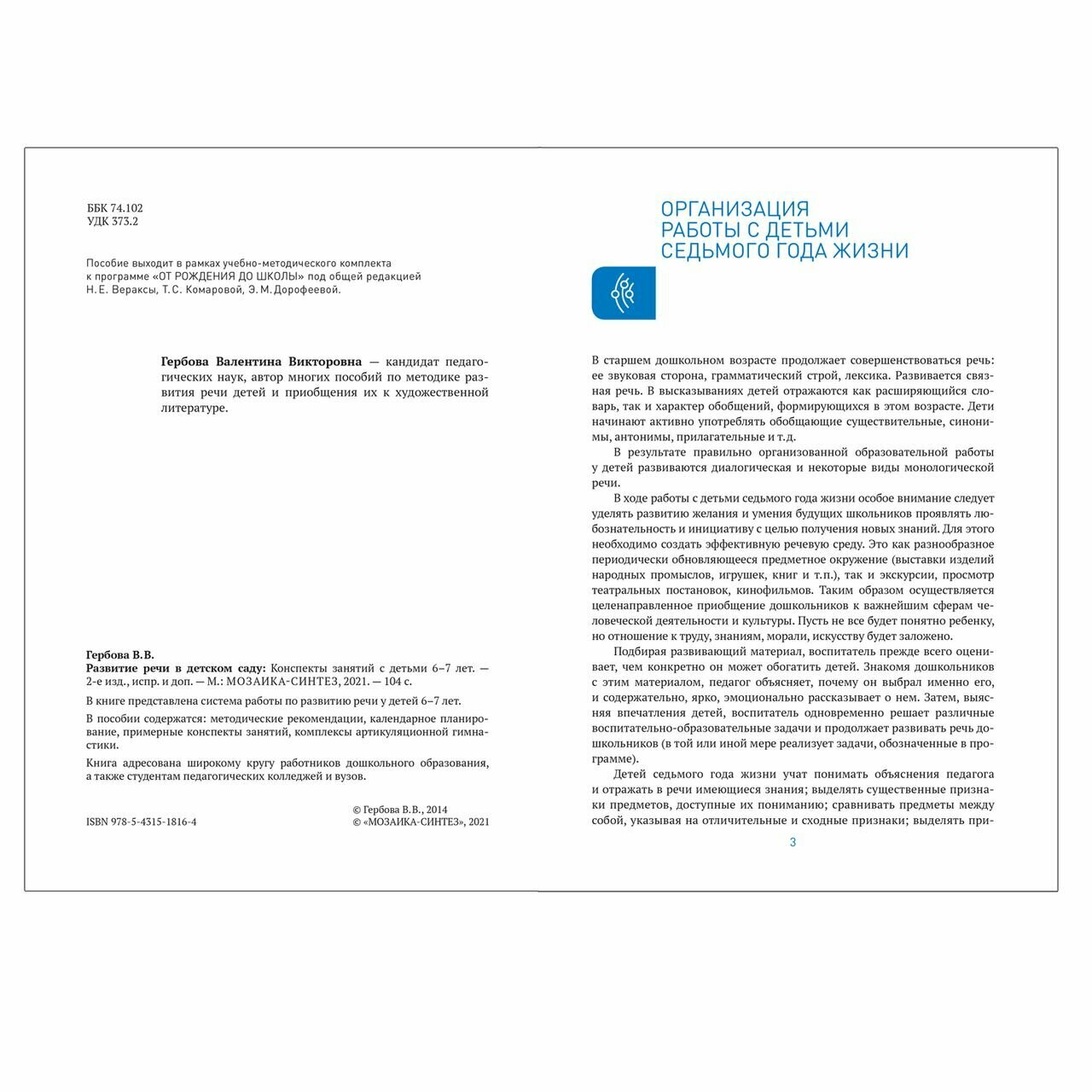 Развитие речи в детском саду с детьми 6-7 лет. Конспекты занятий. (Гербова Валентина Викторовна); Мозаика-Синтез, 2020 г.