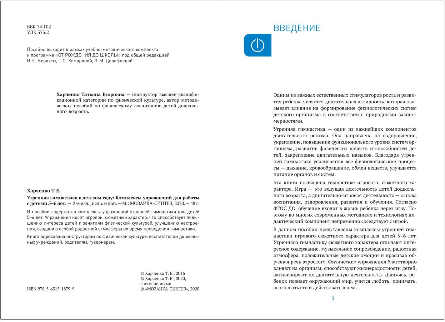 Утренняя гимнастика в детском саду. 5-6 лет. Комплексы упражнений. (Харченко Татьяна Егоровна); МОЗАИКА kids, 2022