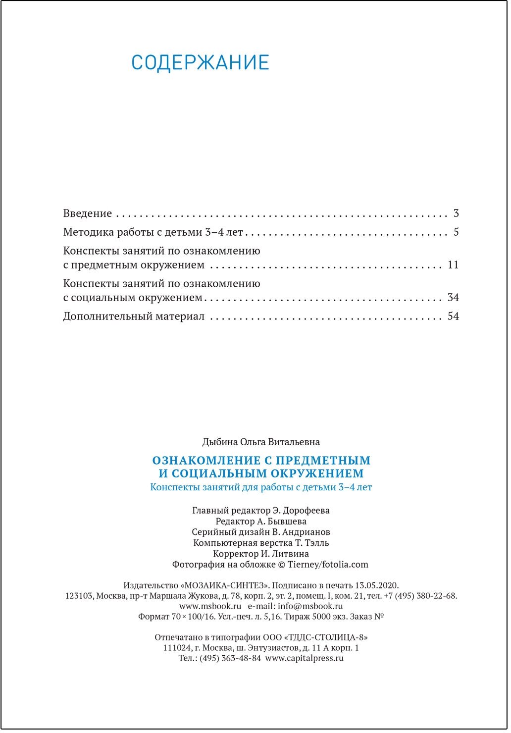 Ознакомление с предметным и социальным окружением. 3-4 года. Конспекты занятий. (Дыбина Ольга Витальевна); МОЗАИКА СИНТЕЗ ООО, 2021