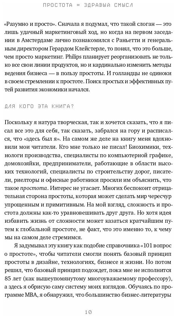 Эта книга, которая читается легко и быстро вас просто поразит! Она приоткрывает тонкости нашего современного мира, где основные принципы - простота сложных приложений, программ, дизайнов. Очень рекомендую прочитать эту книгу тем, кто связан как-то с айти и дизайном.