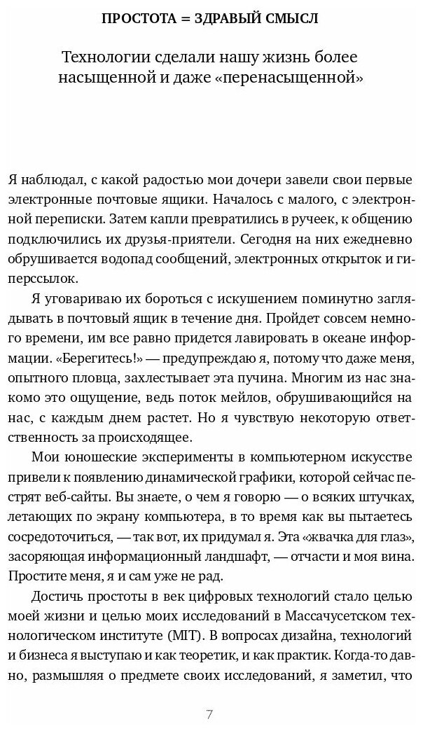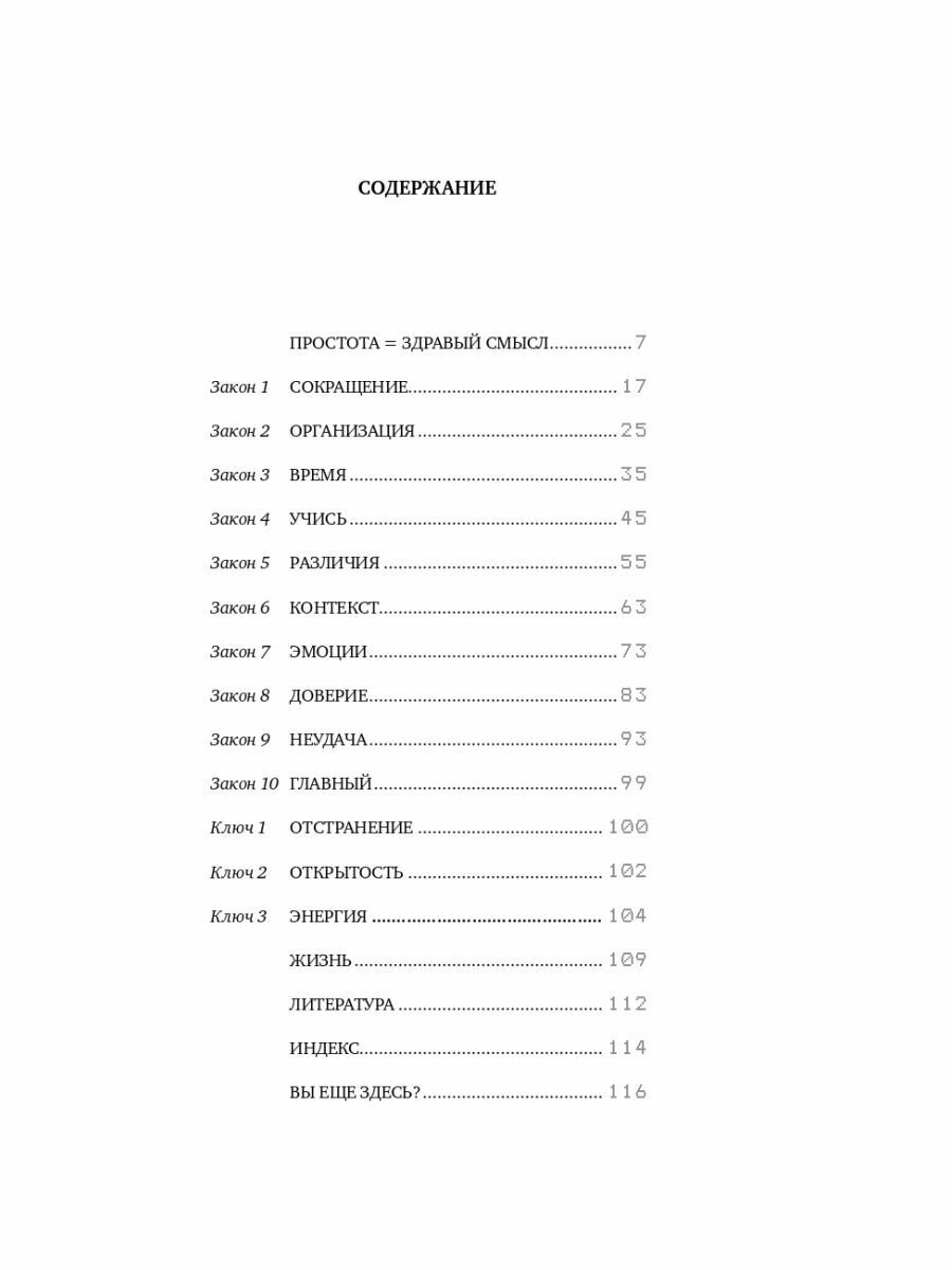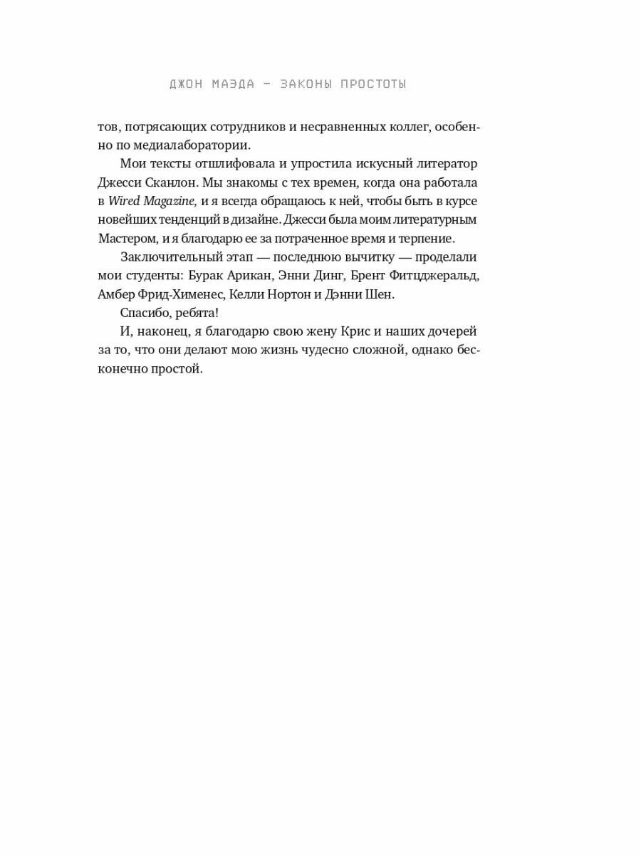 Гуру дизайна, профессор Массачусетского технологического института Джон Маэда сформулировал десять законов, которые помогают сбалансировать простоту и сложность в бизнесе, технологиях и дизайне. Эти законы — прекрасное пособие по достижению максимальных результатов с наименьшими усилиями.