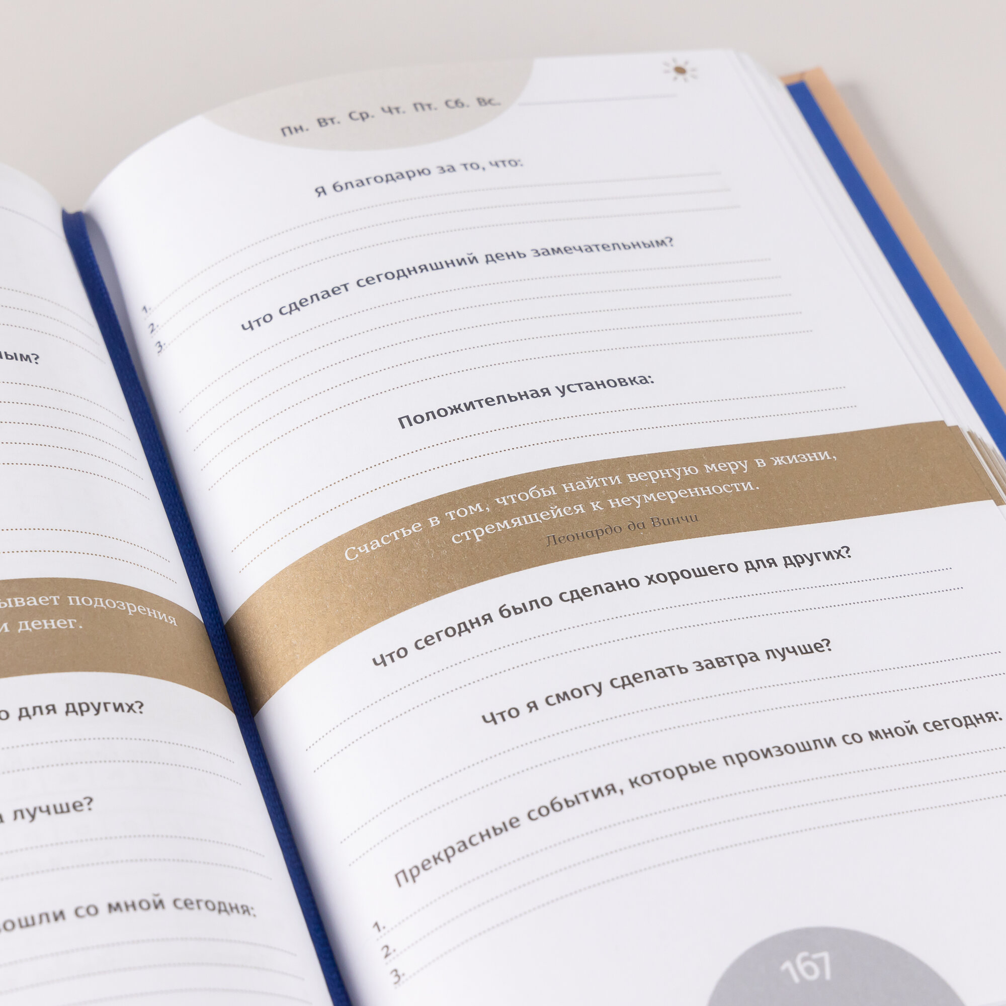 Я точно могу сказать, что этот ежедневник реально творит чудеса и меняет жизни людей. Что самое примечательное - что на первый взгляд кажется, что это обычный блокнот. Но он структурирован таким образом, что вам точно будет что туда записать, а также просто обратить внимание на свои мысли, а также на те изменения, которые аккуратно происходят во время ваших записей. Для меня это просто идеальный инструмент, который не займёт много вашего времени и поможет добиться ваших целей в кратчайшие сроки. Рекомендовать точно могу, и считаю, что его нужно покупать и пользоваться всем без исключения.