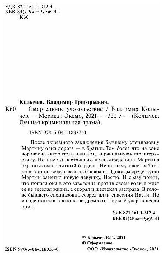 Книга: Смертельное удовольствие (Колычев Владимир Григорьевич); ООО "Издательство "Эксмо", 2021