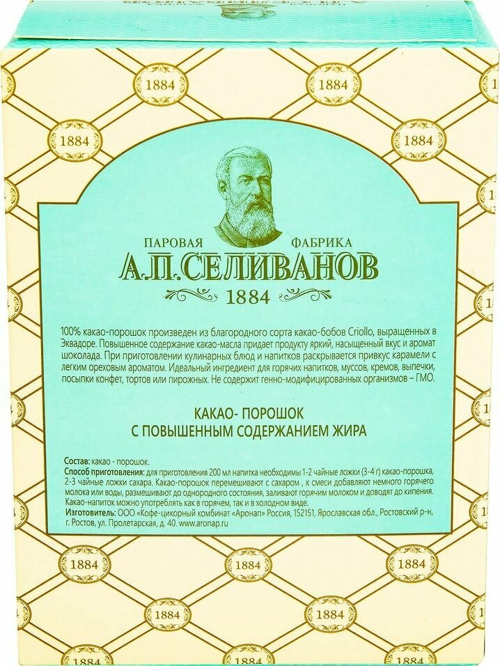 Какао-порошок Паровая фабрика А.П. Селиванов 20% 100г