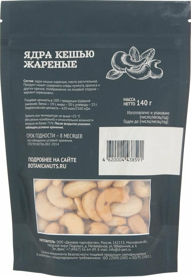 Жареный кешью, выпускающийся под торговой маркой Botanica, обладает изысканным, чуть сладковатым вкусом. Изготовленный из высококачественного отборного сырья без ГМО и искусственных добавок, он станет отличным вариантом быстрого и здорового перекуса. Благодаря удобной многоразовой упаковке продукт можно брать с собой в офис, на прогулку или в путешествие. Богатые белками, витаминами и аминокислотами орехи при умеренном употреблении оказывают положительное влияние на организм в целом.