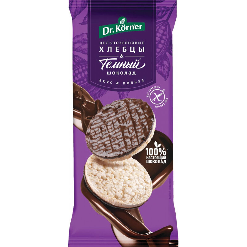 Хлебцы Dr.Korner цельнозерновые с темным шоколадом 67г